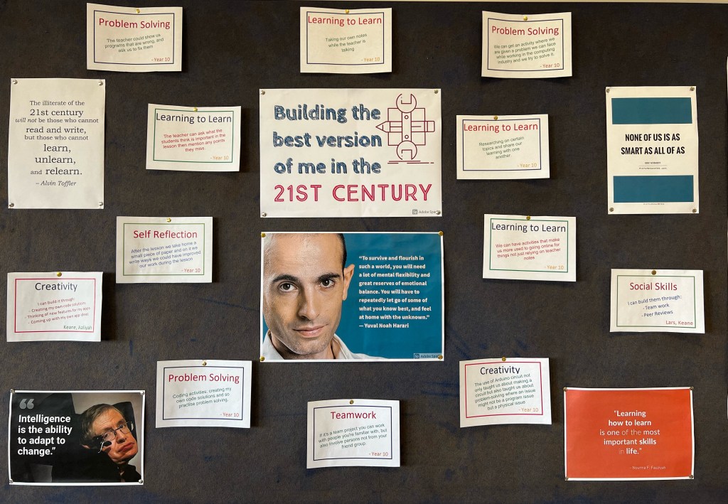 Then through a class discussion we extracted some of the skills we felt were an important part of the toolkit of today’s teenager. We made a list of these skills on the board and briefly discussed each of them.