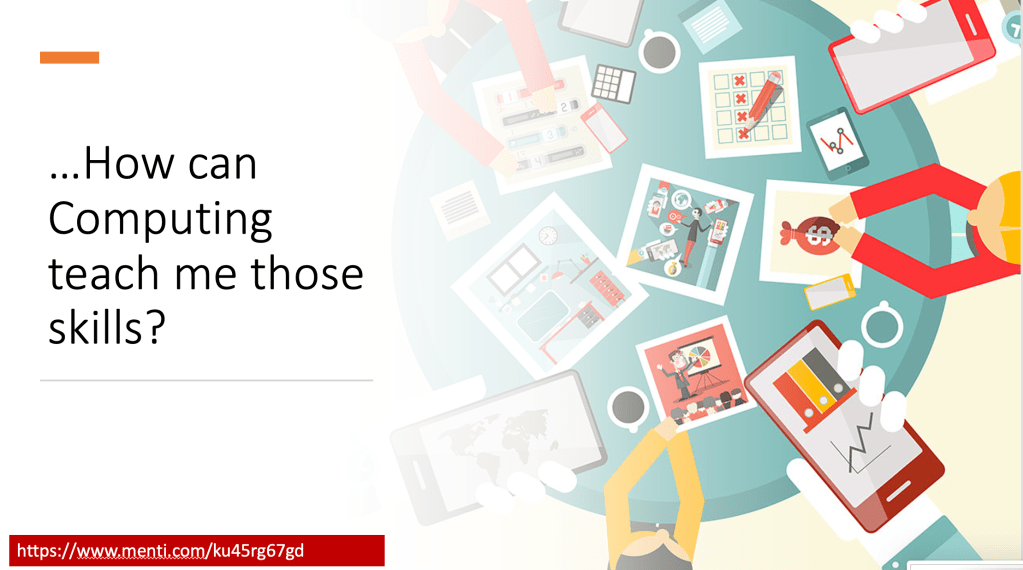 Students were then invited to consider how we can work on developing these skills through our Computing lessons. We discussed points students brought up from their school experience to get things started, and then students were asked to list their own ideas on a mentimeter.